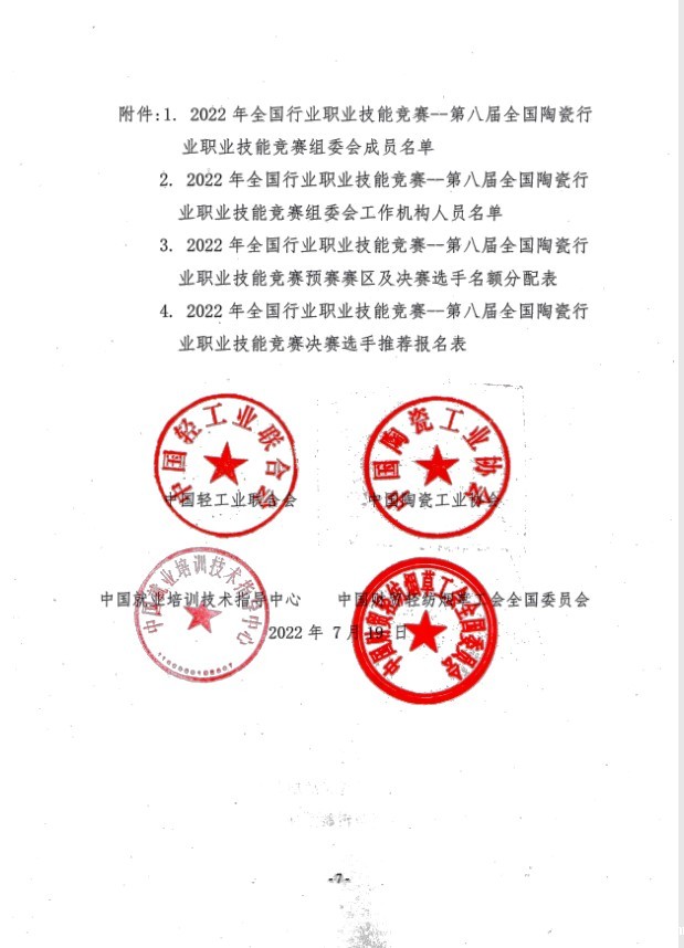 2. 2022年全国行业职业技能竞赛--第八届全国陶瓷行业职业技能竞赛组委会工作机构人员名单