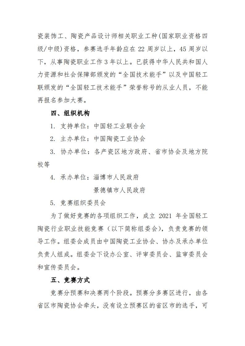 2021年全国轻工陶瓷行业职业技能竞赛预赛赛区