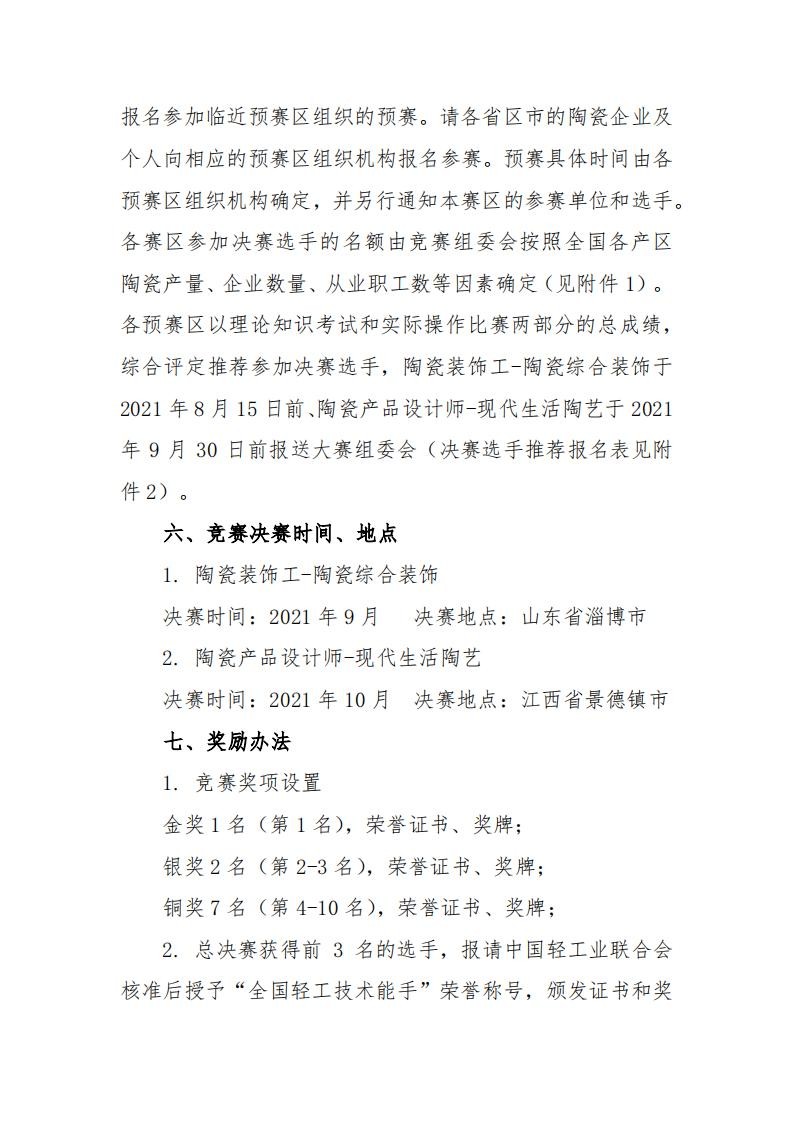 附件:1.2021年全国轻工陶瓷行业职业技能竞赛预赛赛区 及决赛选手名额分配表