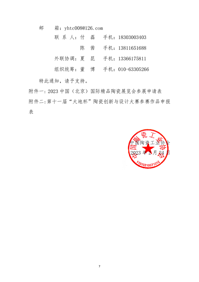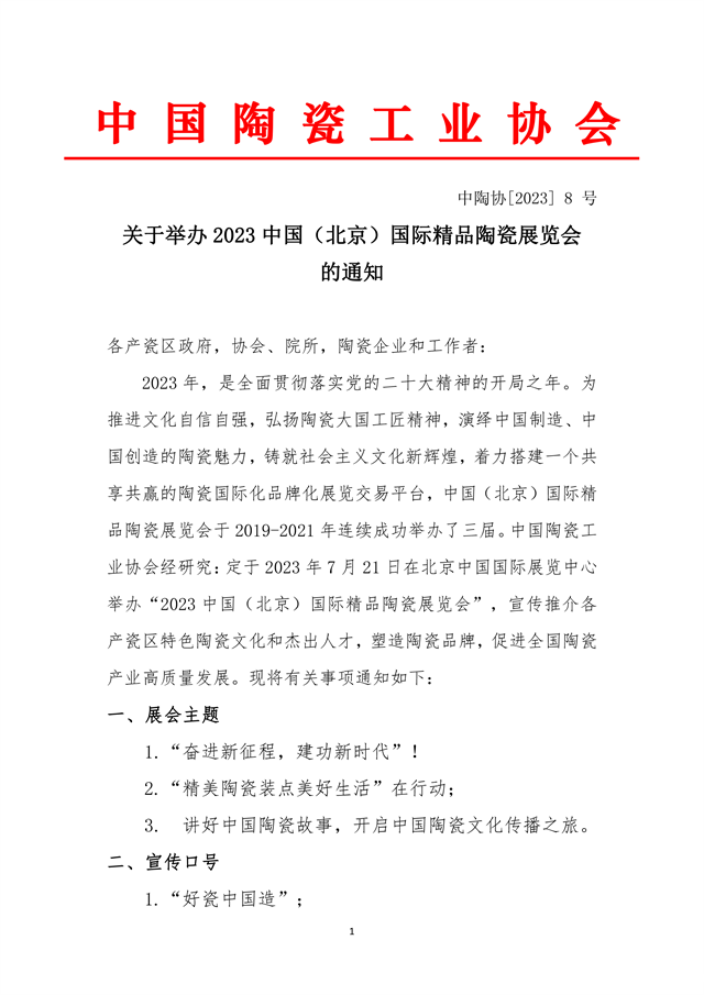 关于举办2023中国(北京)国际精品陶瓷展览会 的通知