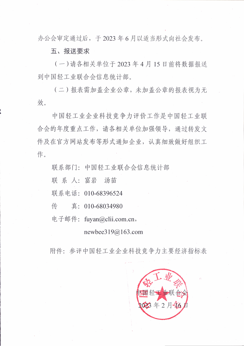 关于开展 2022 年度中国轻工业企业竞争力等统计评价工作的通知