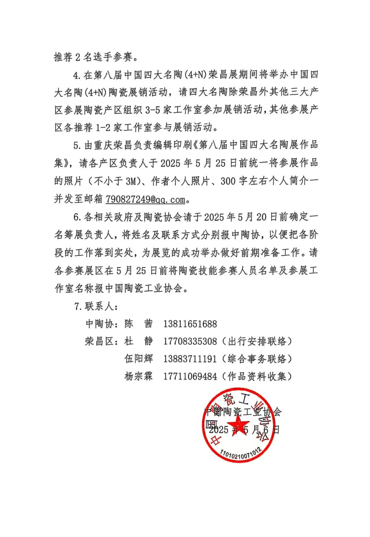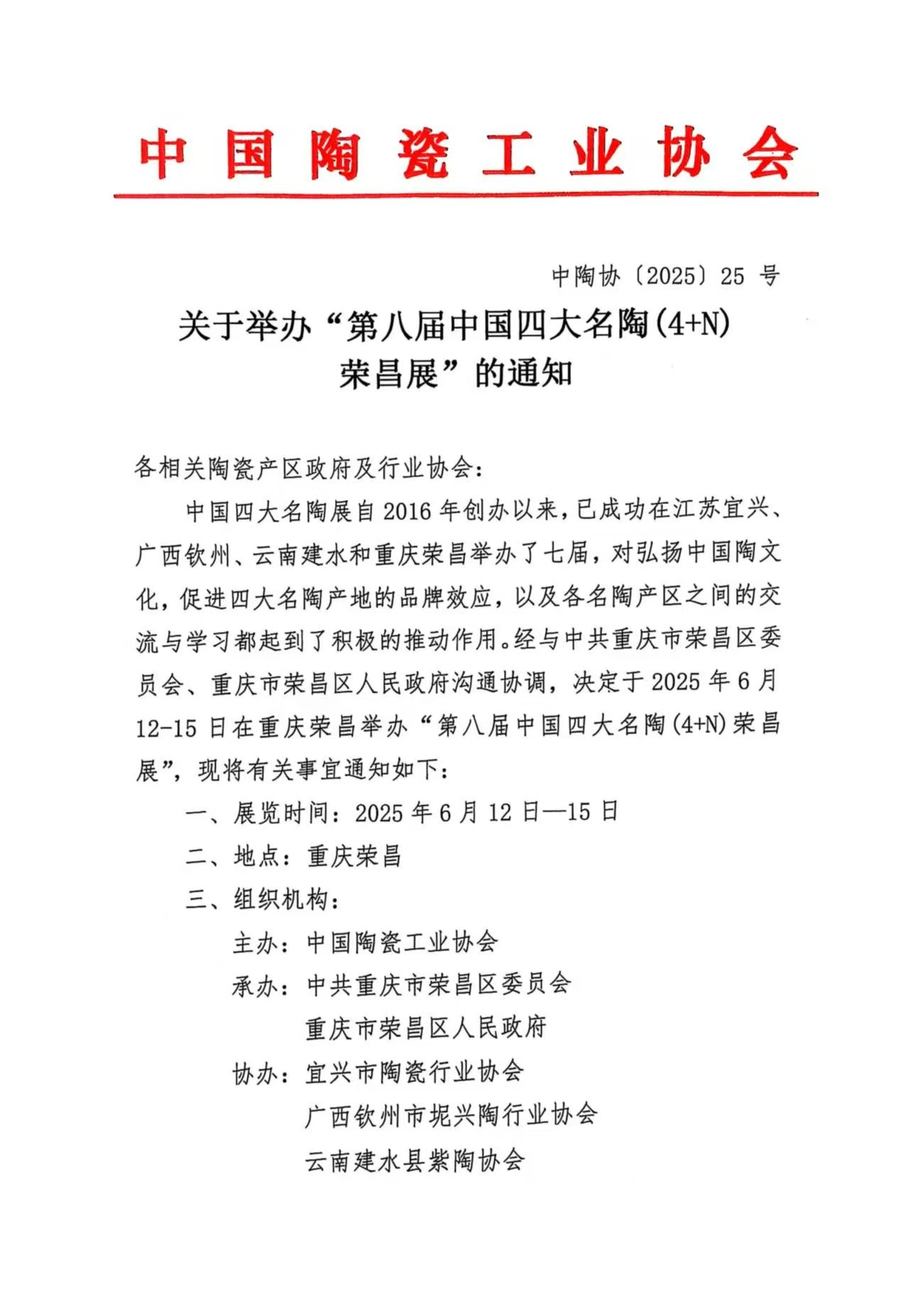 关于举办“第八届中国四大名陶(4+N)荣昌展”的通知