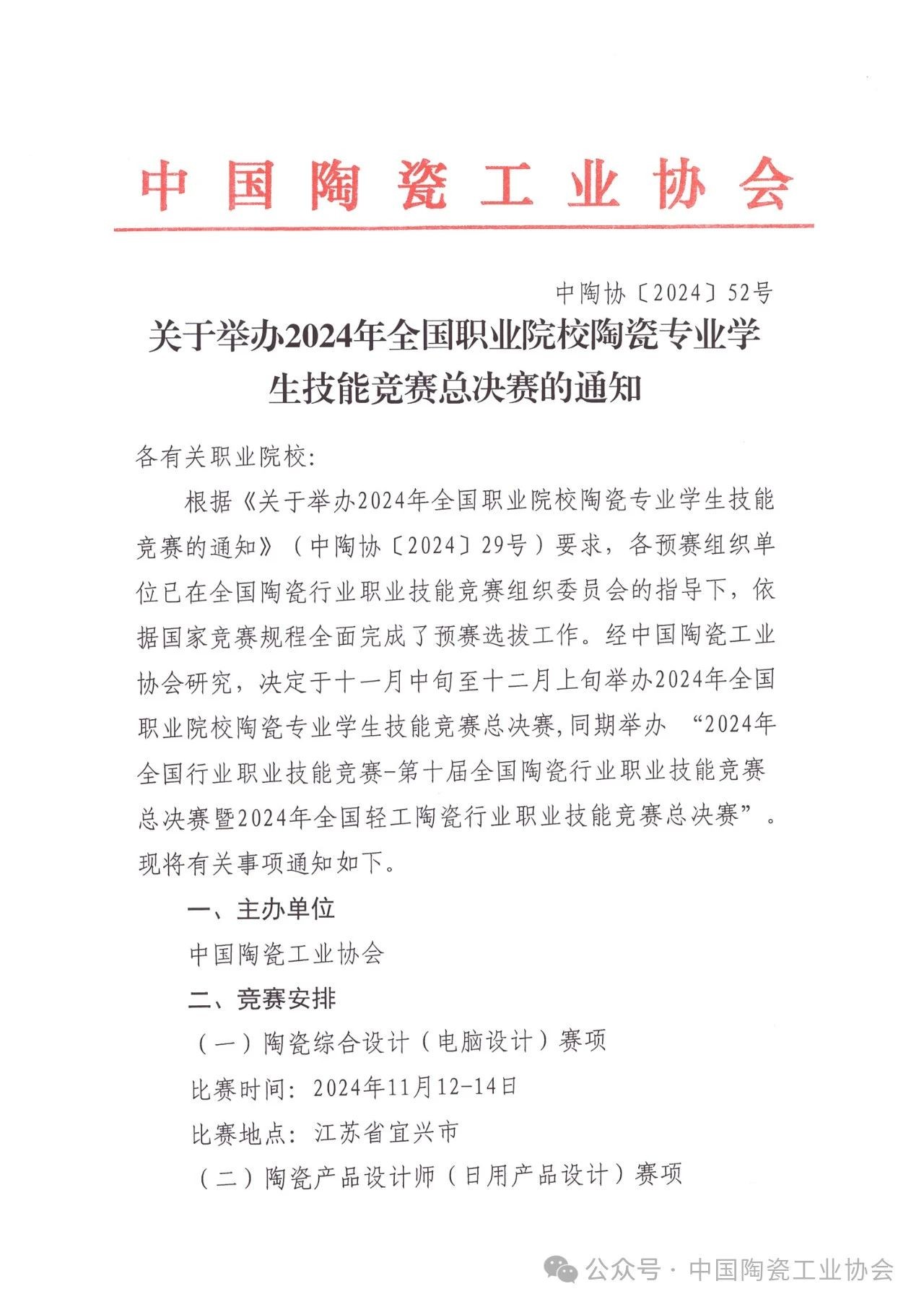 【通知】关于举办2024年全国职业院校陶瓷专业学生技能竞赛总决赛的通知