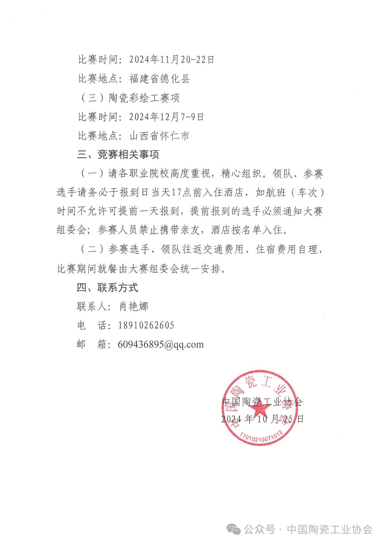 【通知】2024年第十届全国陶瓷行业职业技能竞赛(陶瓷彩绘工)总决赛暨全国轻工陶瓷行业职业技能竞赛(陶瓷综合装饰)总决赛的通知