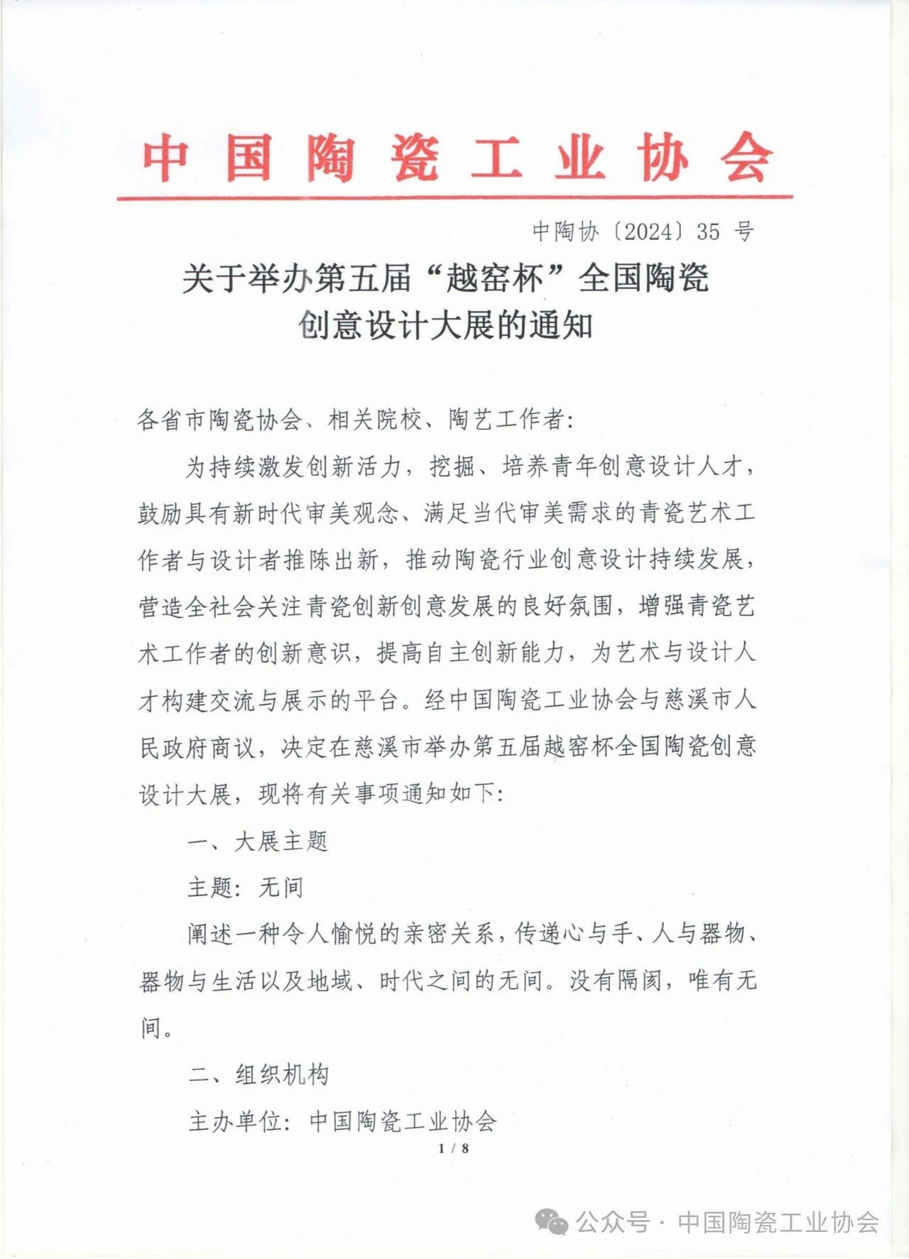 关于举办第五届“越窑杯”全国陶瓷创意设计大展的通知