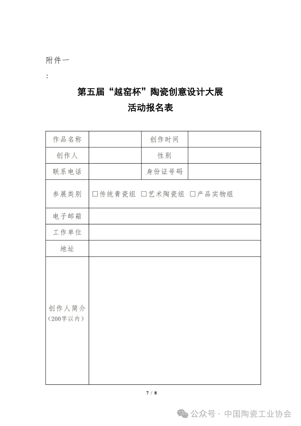 附件1:第五届“越窑杯”陶瓷创意设计大展活动报名表