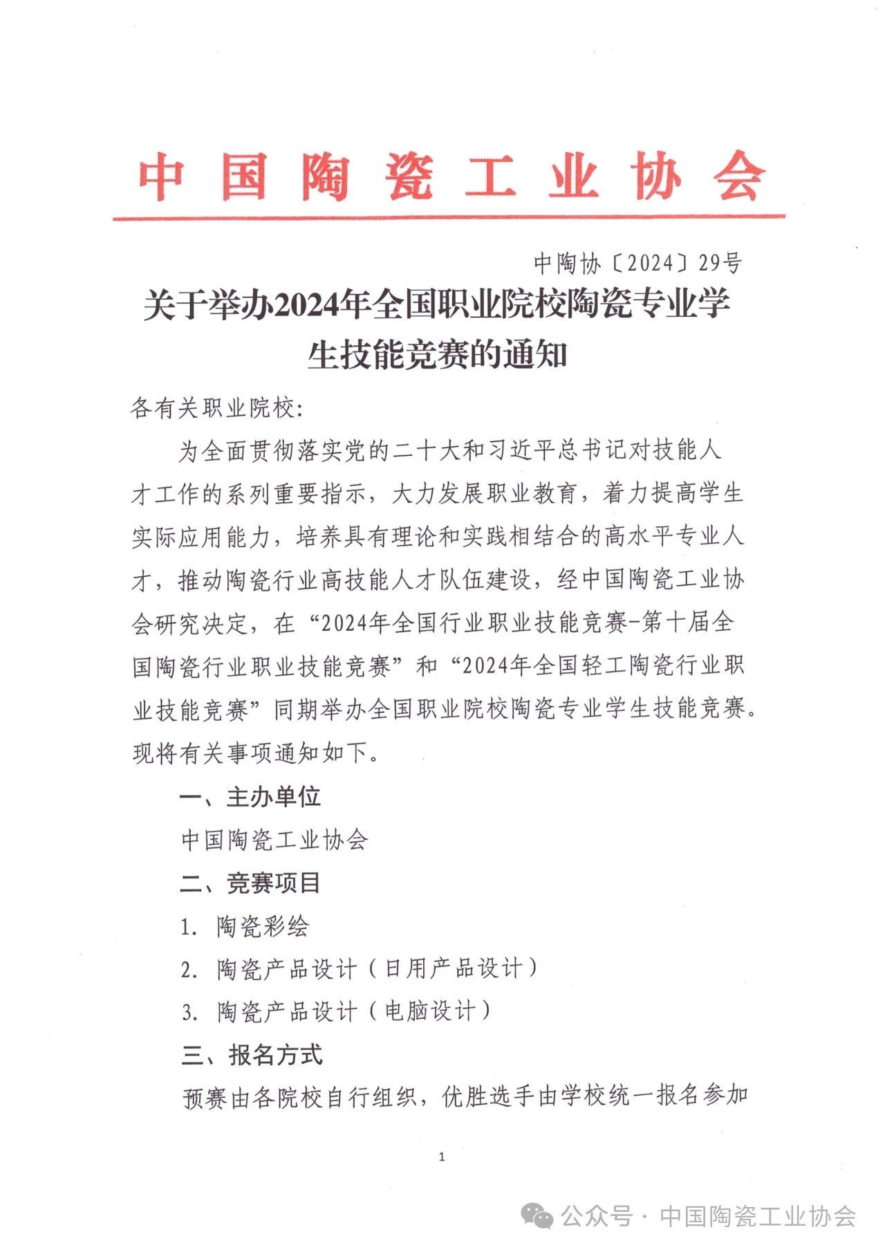 【通知】关于举办2024年全国行业职业技能竞赛--第十届全国陶瓷行业职业技能竞赛的通知