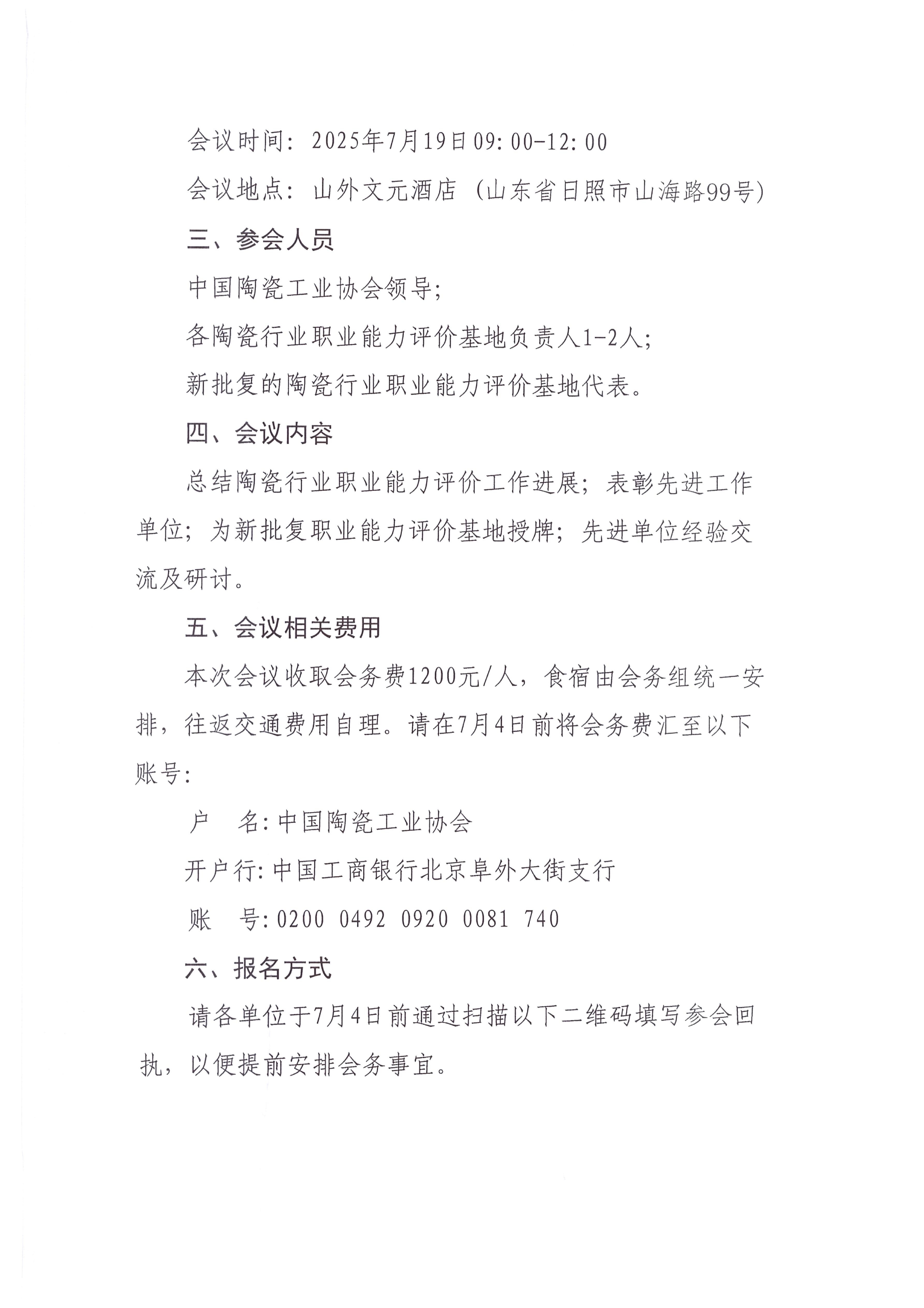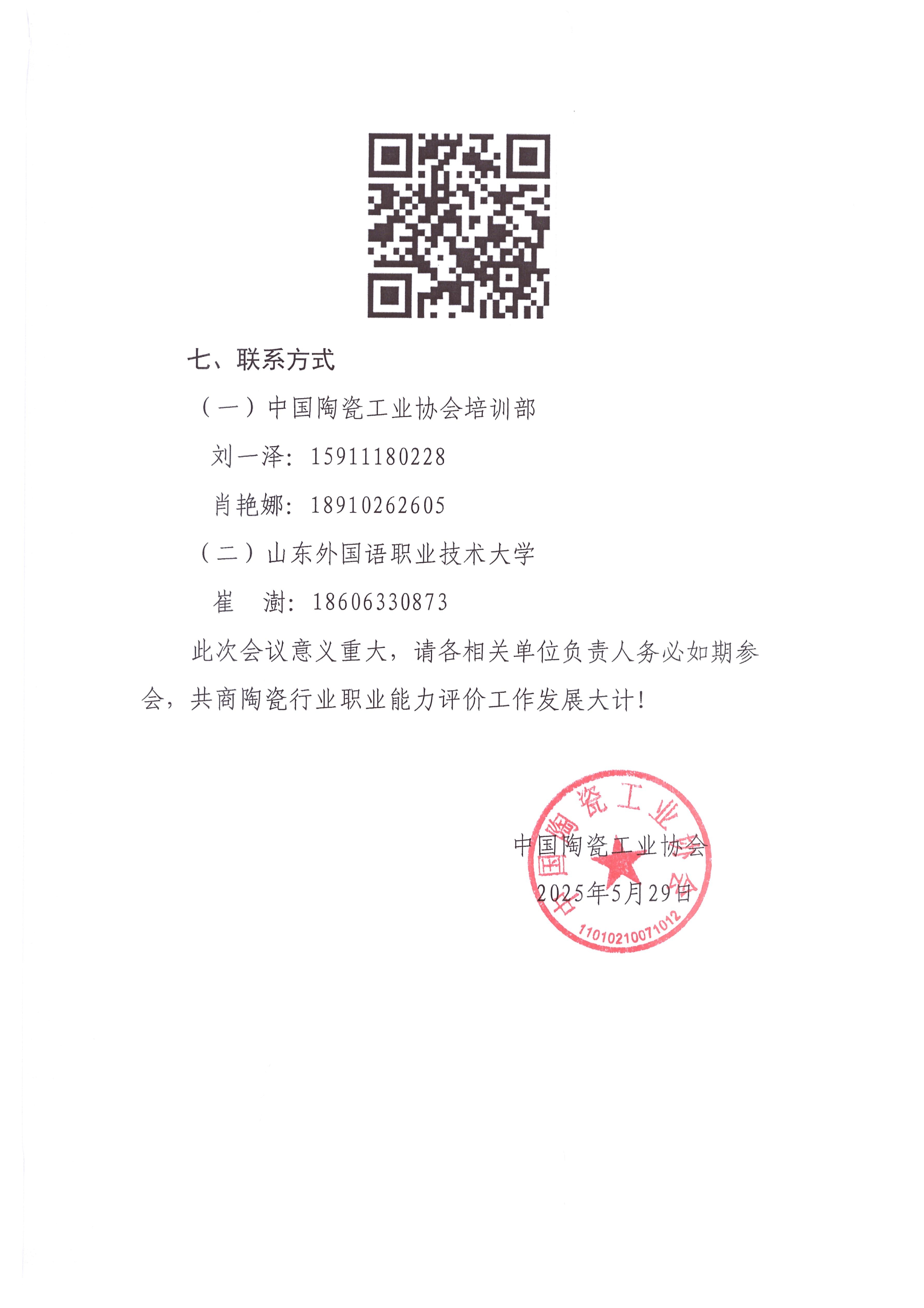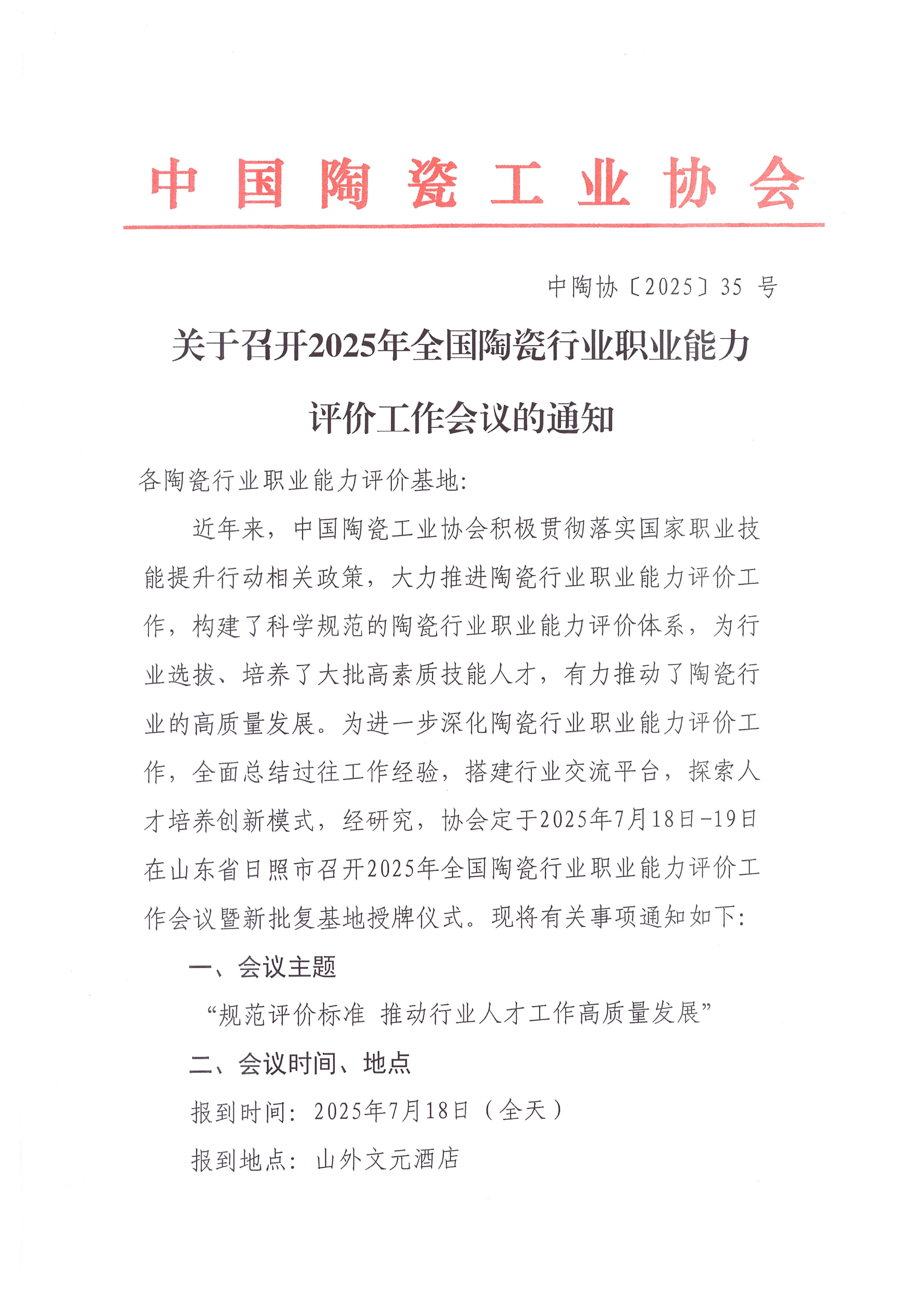 关于召开2025年全国陶瓷行业职业能力 评价工作会议的通知