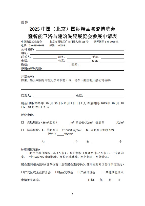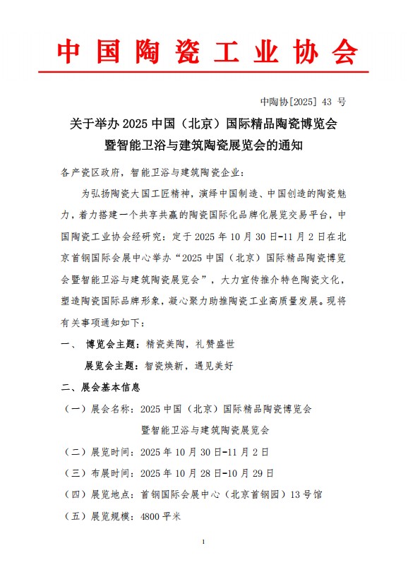 关于举办2025中国(北京)国际精品陶瓷博览会 暨智能卫浴与建筑陶瓷展览会的通知