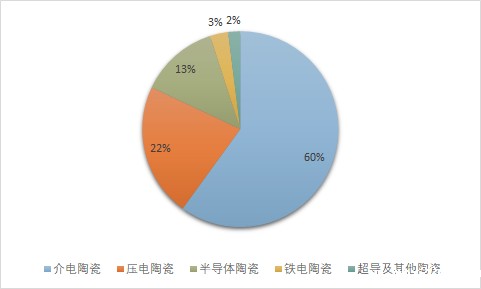介电陶瓷是电子陶瓷中最大的细分领域,主要用于电容器、绝缘子等电子元件,预计占据整个电子陶瓷市场55-65%。压电陶瓷是电子陶瓷的第二大细分领域,广泛应用于传感器、换能器等,预计占比20-25%。半导体陶瓷主要用于热敏电阻、气敏传感器等,主要受5G、物联网需求驱动,预计占比10-13%。铁电陶瓷主要用于存储器和电容器,属于功能陶瓷的高端领域,占比2-4%。超导陶瓷及其他电子陶瓷目前处于技术探索阶段,商业化应用较少,市场份额极小,预计不足2%。