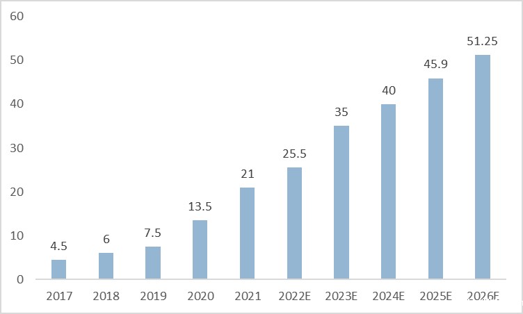 随着电子陶瓷材料在电子产品、信息通信、汽车工业、航空航天等领域应用不断加深,电子陶瓷材料需求稳步提升。在电子陶瓷材料制造企业的迅速发展背景下,电子陶瓷材料排胶烧结窑炉及配套设备市场空间不断增长。根据中金企信统计数据,2021年中国电子陶瓷材料排胶烧结窑炉及配套设备市场规模约为21亿元,同比增长55.6%。随着电子陶瓷材料需求提升,电子陶瓷材料制造企业将对电子陶瓷材料排胶烧结窑炉需求进一步增长,预计未来5年内,电子陶瓷材料排胶烧结窑炉及配套设备市场仍将以超过20%的年均复合增长率继续增长。