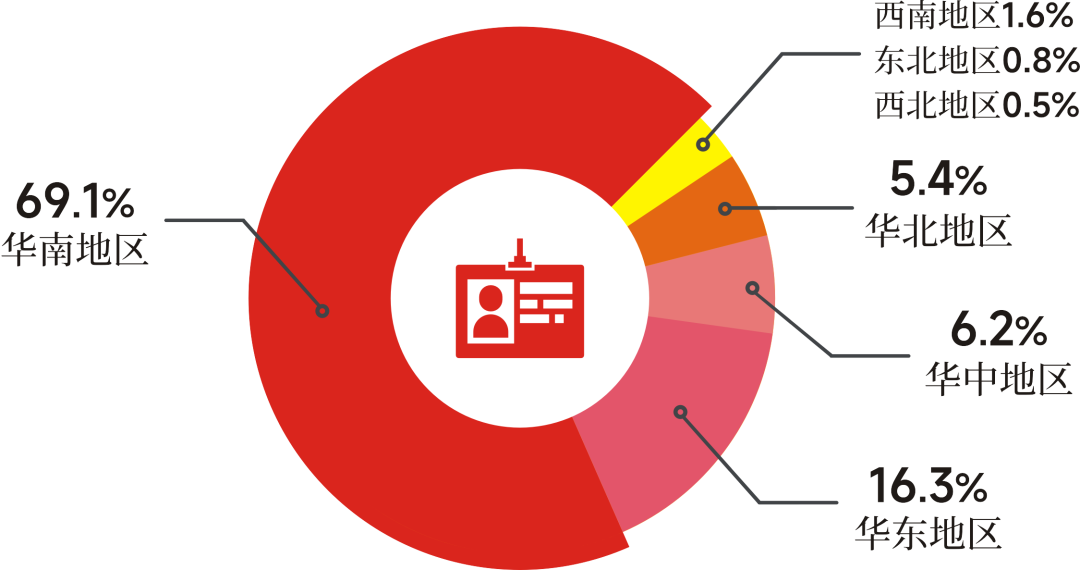 国内观众来自31个省份的303个城市,其中,华南地区观众数量占比69.1%,华东地区占比16.3%,华中地区占比6.2%,华北地区占比5.4%,西南地区占比1.6%,东北地区占比0.8%,西北地区占比0.5%。观众数量排名前10的省份依次是:广东、山东、江西、福建、湖南、河南、江苏、北京、河北、广西。