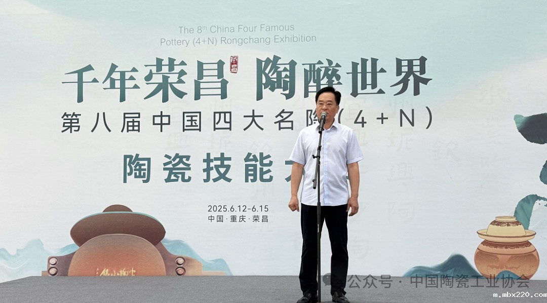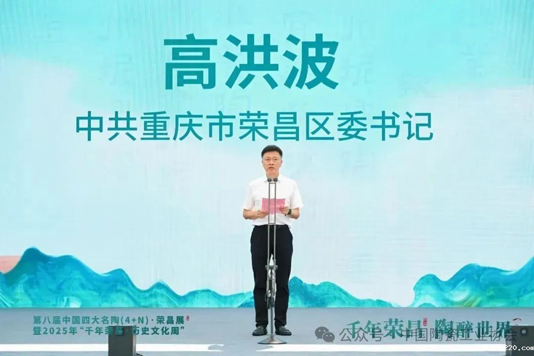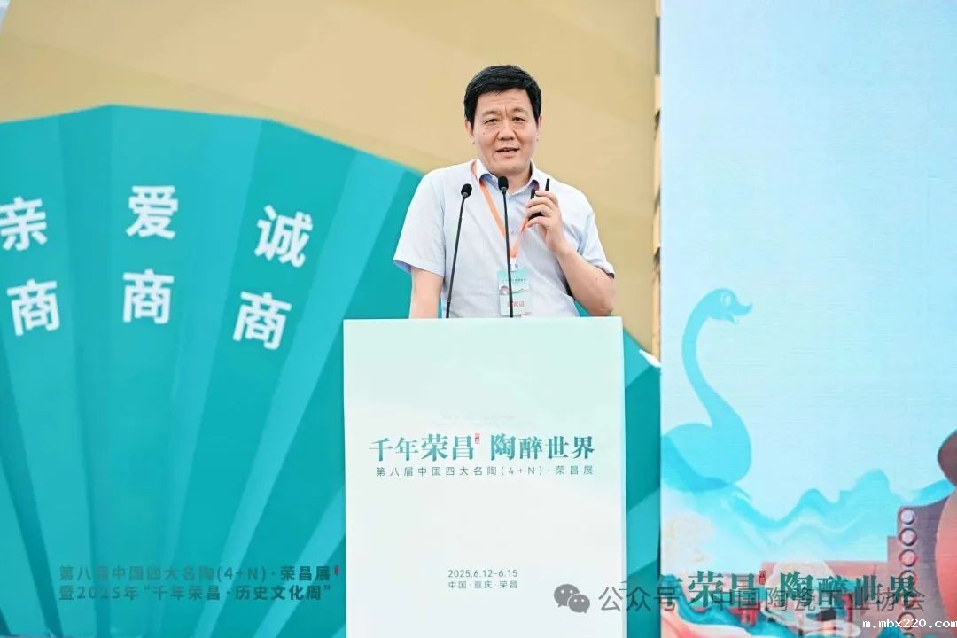 中共重庆市荣昌区委高洪波书记在致辞中介绍到,荣昌拥有陶器、夏布、折扇三大国家级非遗,陶瓷产业构建起全产业链生态,集聚企业180家,年产值50亿元。期盼各产区以陶为媒深化交流互鉴与创新合作,推动陶产业转型升级。诚邀宾朋感受荣昌非遗魅力、寻找投资机遇。