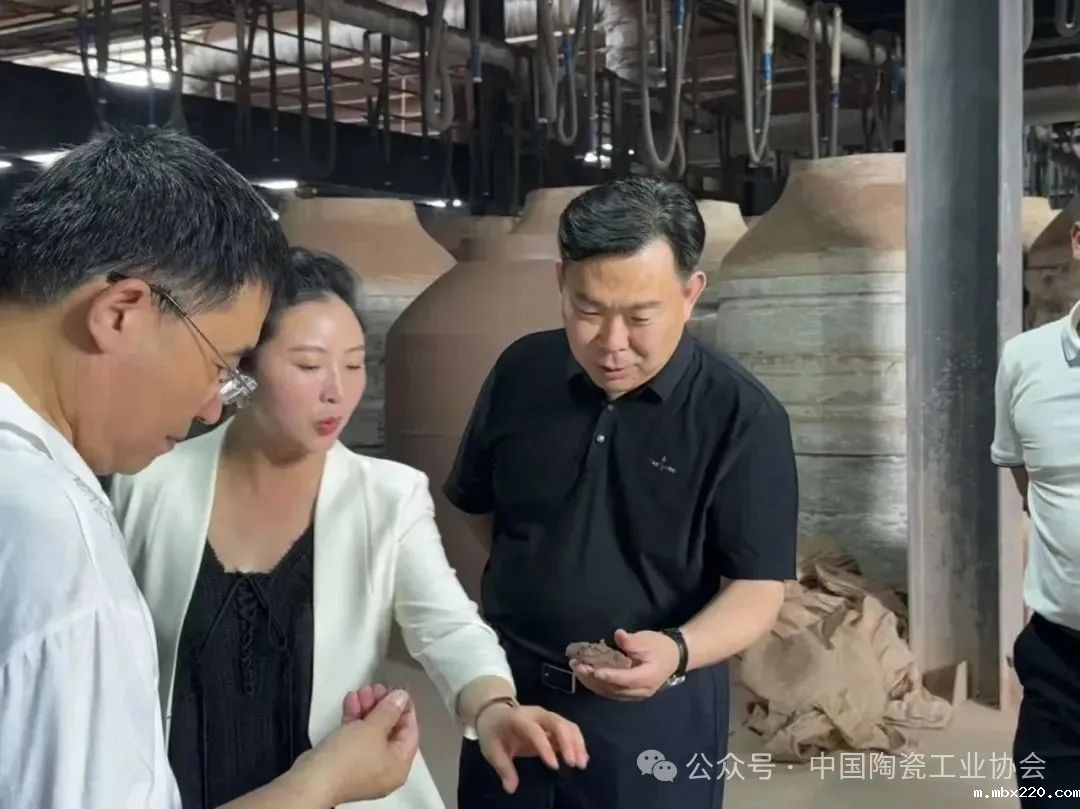 展会期间,刘挺理事长带队赴重庆名檀陶瓷有限公司开展调研,参观了现代化生产车间,实地考察原料制备、成型烧成、智能喷釉等核心工艺流程,并邀请企业参加即将于6月18日开幕的广州陶瓷工业展。