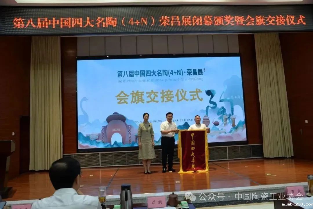 6月14日闭幕式上,协会常务副理事长吴越申宣读了陶瓷技能大赛优秀作品名单,副理事长侯文全宣读了四大名陶展优秀作品名单,并为其颁发了荣誉。举行了四大名陶展会旗交接仪式,下一届中国四大名陶(4+N)展将在荣县举办。刘挺理事长发表讲话并宣布展会闭幕。