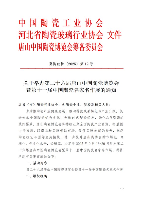 关于举办第二十六届唐山中国陶瓷博览会暨第十一届中国陶瓷名家名作展的通知