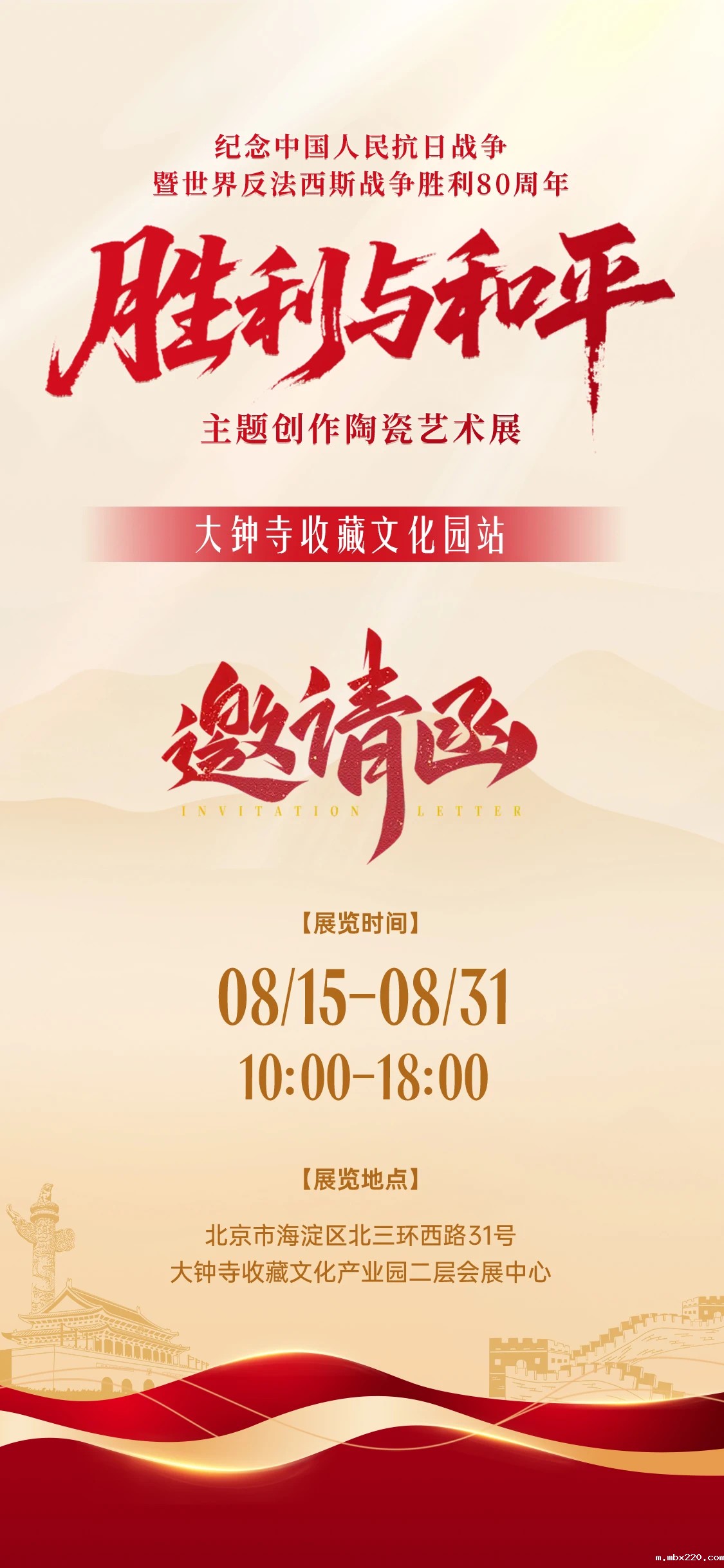 为纪念中国人民抗日战争暨世界反法西斯战争胜利80周年,胜利与和平—纪念中国人民抗日战争暨世界反法西斯战争胜利80周年主题创作陶瓷艺术展于815日正式迁至北京市海淀区北三环西路31号大钟寺收藏文化产业园二层会展中心,展览将持续至831日,每日10:00-18:00对公众开放。本次展览以铭记历史、珍爱和平为主线,通过百余件陶瓷艺术精品与书画名家创作的深度融合,打造沉浸式爱国主义教育课堂,同时搭建跨领域艺术交流平台,推动陶瓷文化与首都多元文化的创新互鉴。