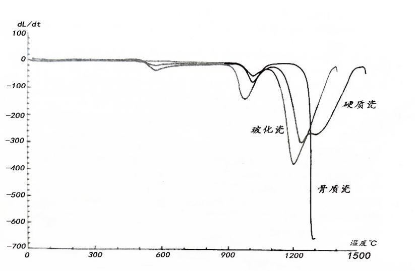 图1 骨质瓷、硬质瓷和玻化瓷坯体膨胀曲线