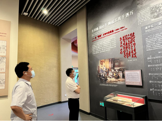 协会全体党员及员工参观了“历史回响、人民心声”、“深山里飞出不朽的歌”、“让心中的歌代代传唱”三个展区。纪念馆通过800幅历史图片,以文字、摄影、绘画、浮雕、幻影成像等多种艺术方式,全方位展示了中国共产党带领全国人民求解放、谋幸福的艰难历程,呈现了200多首不同时代不同背景下代表性的经典红色歌曲。各个历史时期具有经典性、代表性和艺术性的优秀歌曲,辅以歌曲背后的动人故事,在中国共产党百年发展中发挥着号角的作用,撩拨着每一位共产党员的心弦。